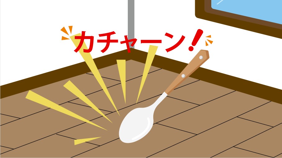 軽量床衝撃音とは、スプーンを落とした時の「カチャーン!」、軽い物体を落とした時の「コツン!」、スリッパで歩く時の「パタパタ!」という音など、軽くて硬い衝撃音を指します。