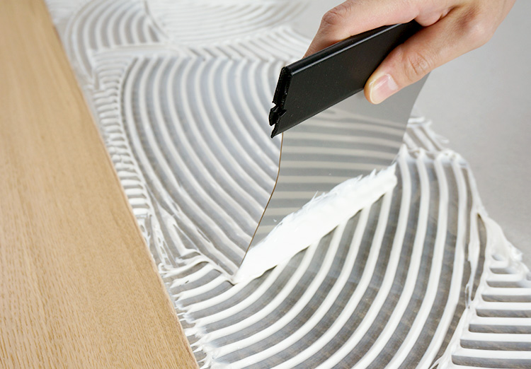 床材の動きを「硬く固定」する従来の接着剤とは異なり、フローリングの「動きに追従」するため、ソリや突き上げの原因となるストレスを緩和します。