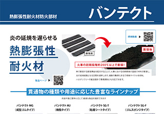 熱で膨張する膨張黒鉛を配合することで、火事における初期燃焼の温度で材料が膨張し、炎の延焼経路となる空間を遮断します。
